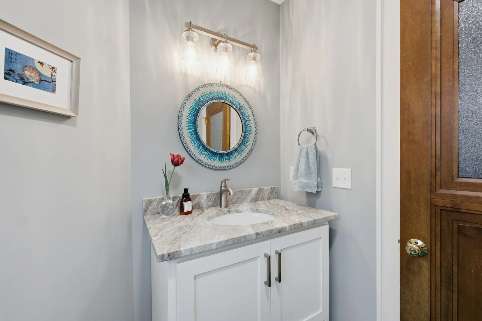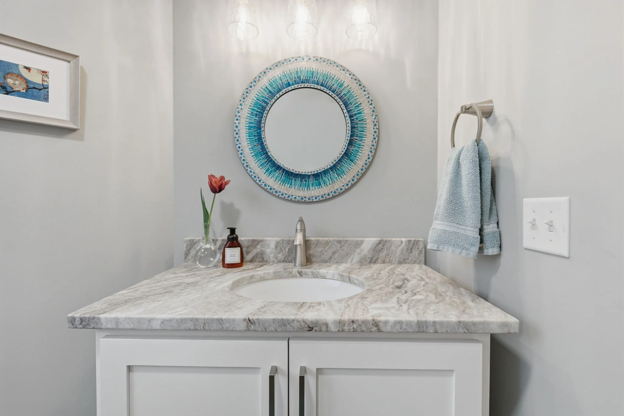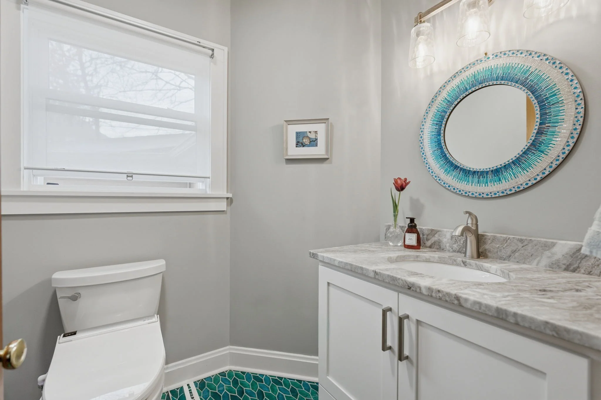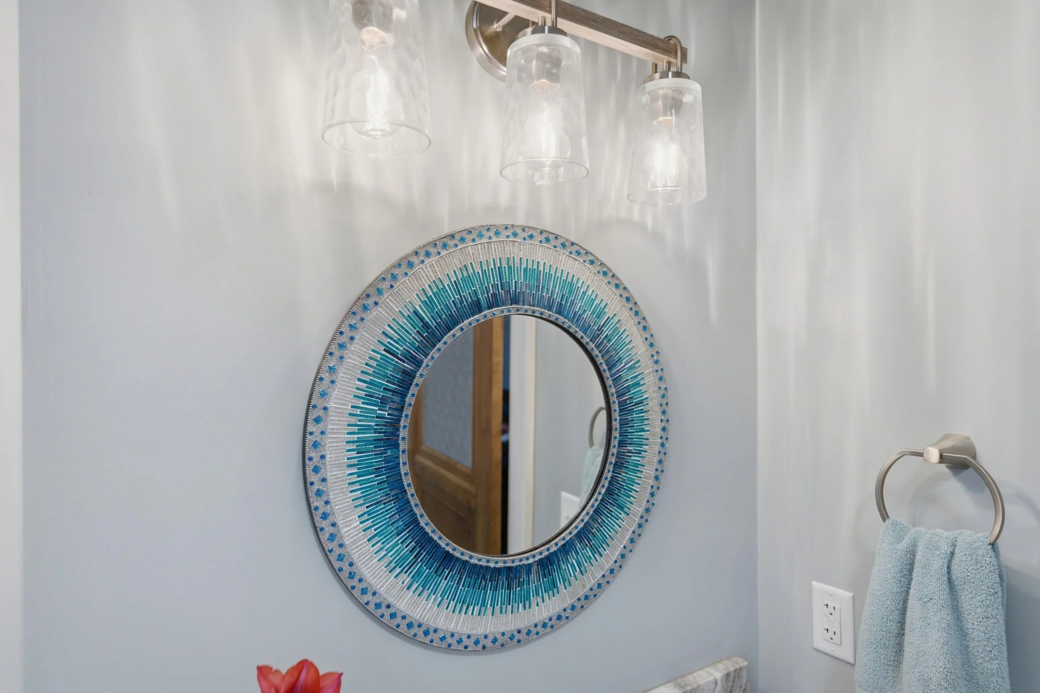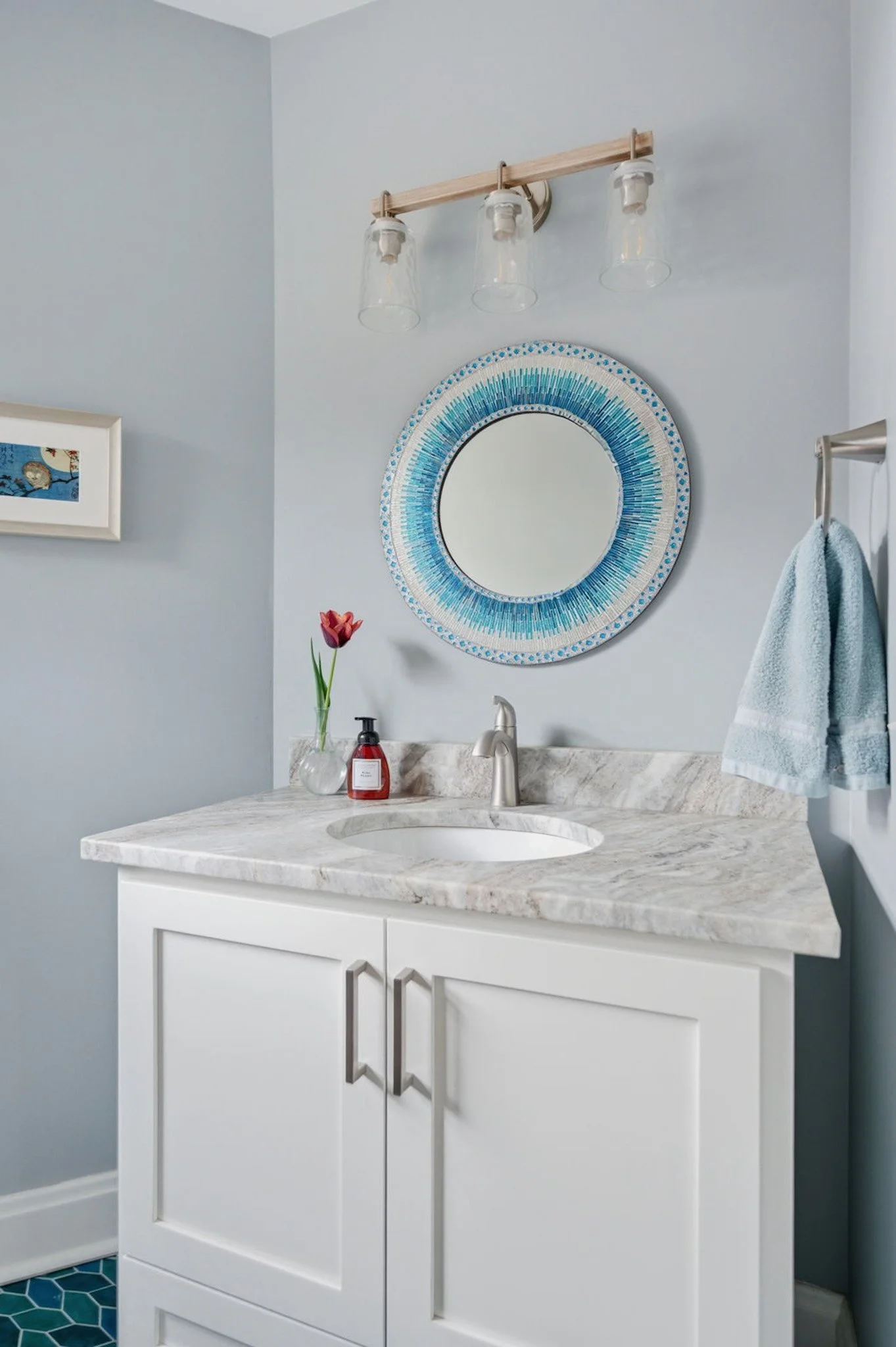 Small space, big statement. This bold tile from The Tile Shop brings all the drama to our latest powder room project.